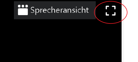 - Rechts oben im Fenster kannst Du zwischen „Sprecheransicht“ und „Galerieansicht“ wechseln. Außerdem kannst Du zur Bildschirm Vollansicht wechseln, was sinnvoll ist.